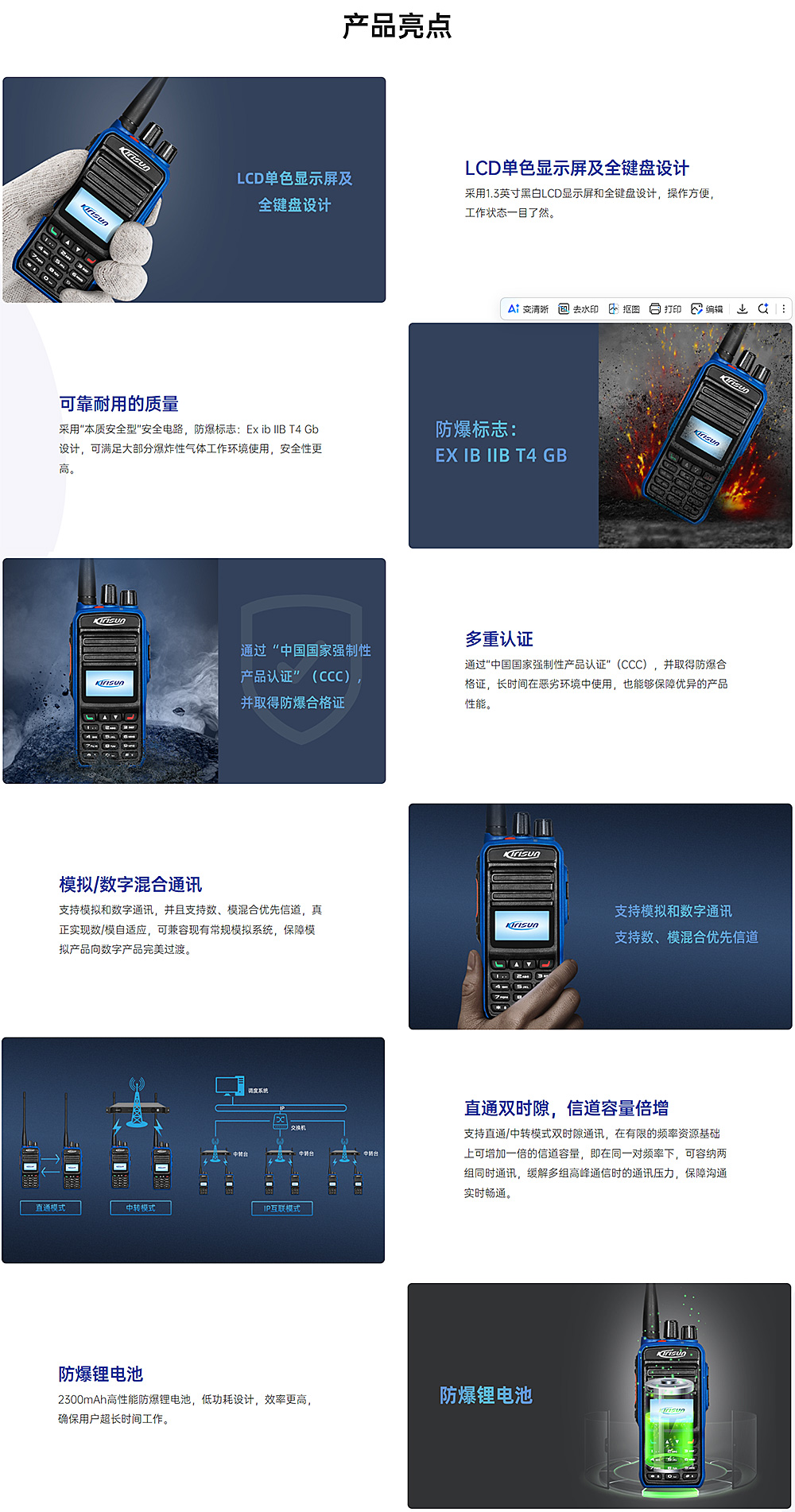 DP610数字防爆对讲机符合GB3836.1-2021和GB3836.4-2021标准,可用于易爆危险区域1区和2区,本产品采用本质安全防爆技术,具有丰富的数字应用功能,出色的语音质量,是危险气体工作环境中最理想的专业通讯对讲设备。