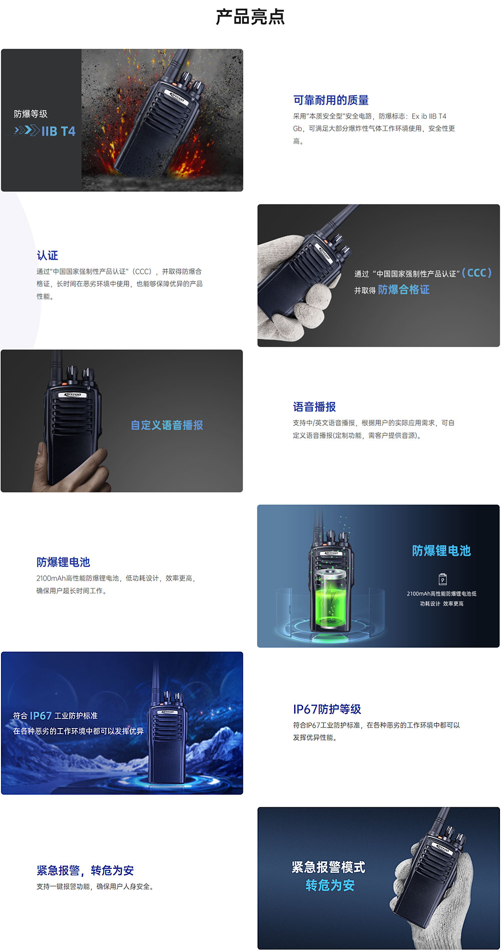 PT7200Ex模拟防爆对讲机销售长达10年以上,是科立讯当之无愧的模拟防爆机王,强硬的硬件设计及产品质量深得用户的认可。符合最新GB/T 3836.1-2021,GB/T 3836.4-2021标准执行。可用于易爆危险区域1区和2区,本产品采用本质安全防爆技术,是危险气体工作环境中最理想的专业通讯对讲设备。
